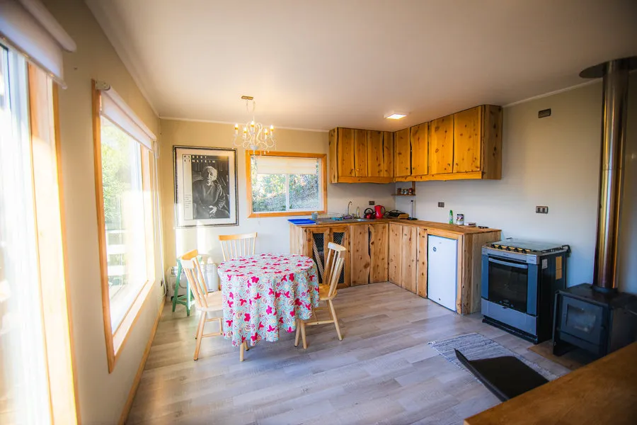 Tiene un lindo sendero comunitario con escalas de madera y plataformas en medio del bosque Nativo que llegan a una pequeña playa.