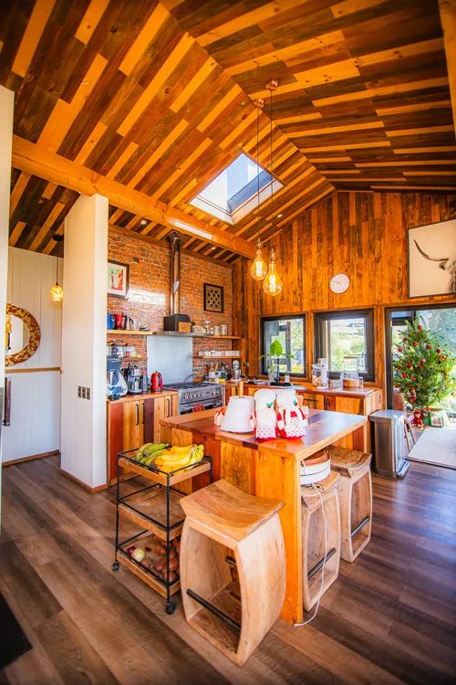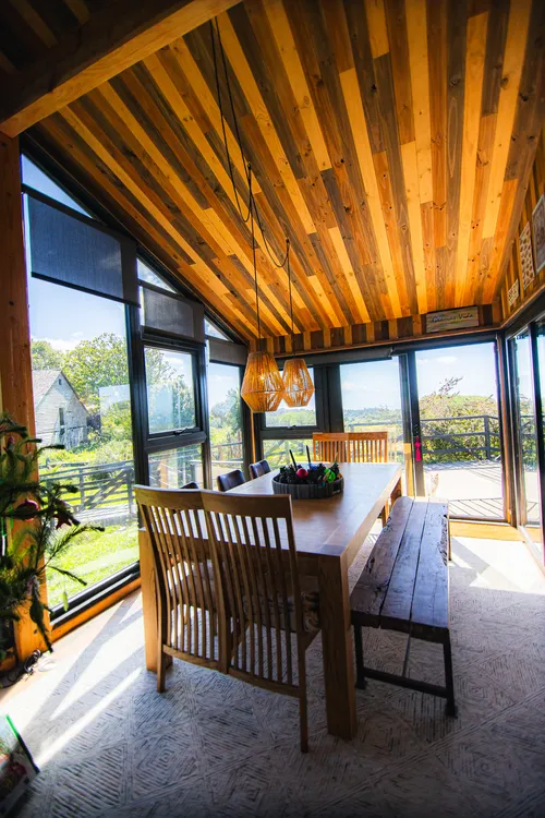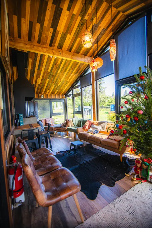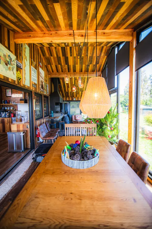 Construcción con maderas nativas. Calefacción central con caldera a gas y radiadores en cada habitación, piso calefaccionado en los baños, más calefactor grande a leña con ventiladores en zona común. Quincho con parrilla, cerrado con ventanales. Estanque de gas de 1000 litros. Estanque de agua de reserva. Cierre perimetral.