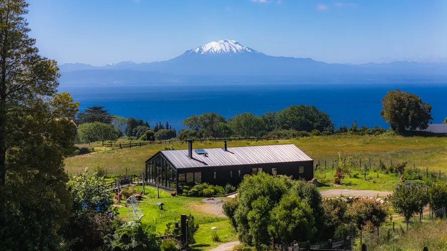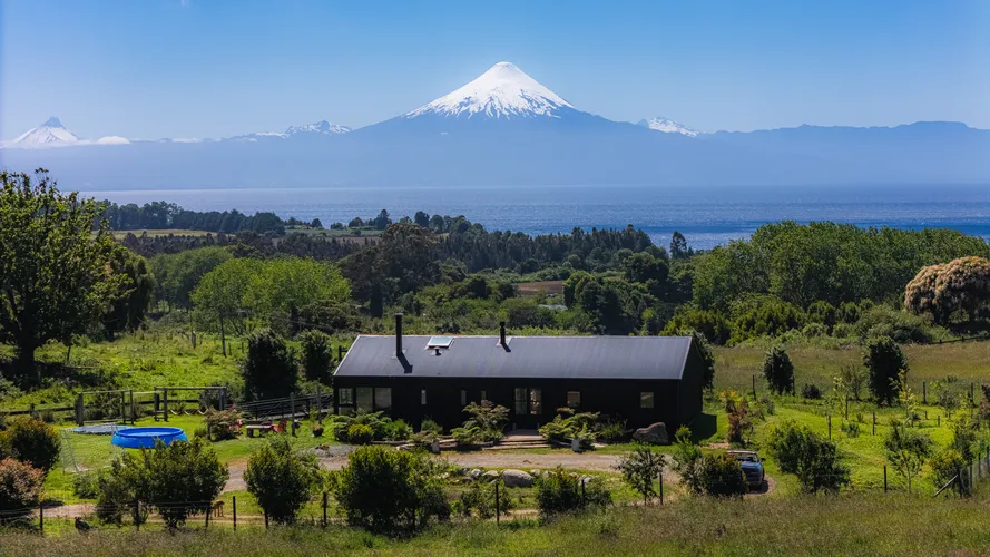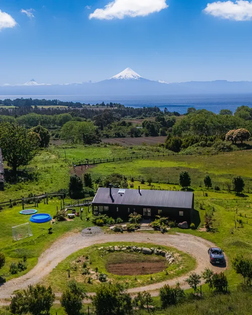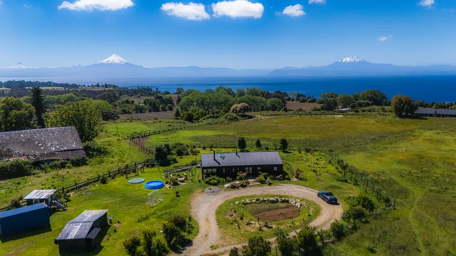Acogedora y luminosa casa con una espectacular vista al lago y volcanes, ubicada en Alto Los Colonos Frutillar, a sólo dos minutos de la costanera. 5.000 m2 de terreno. 154 m2 construídos + bodega + casita de juegos. 3 Dorm y 3 baños.
