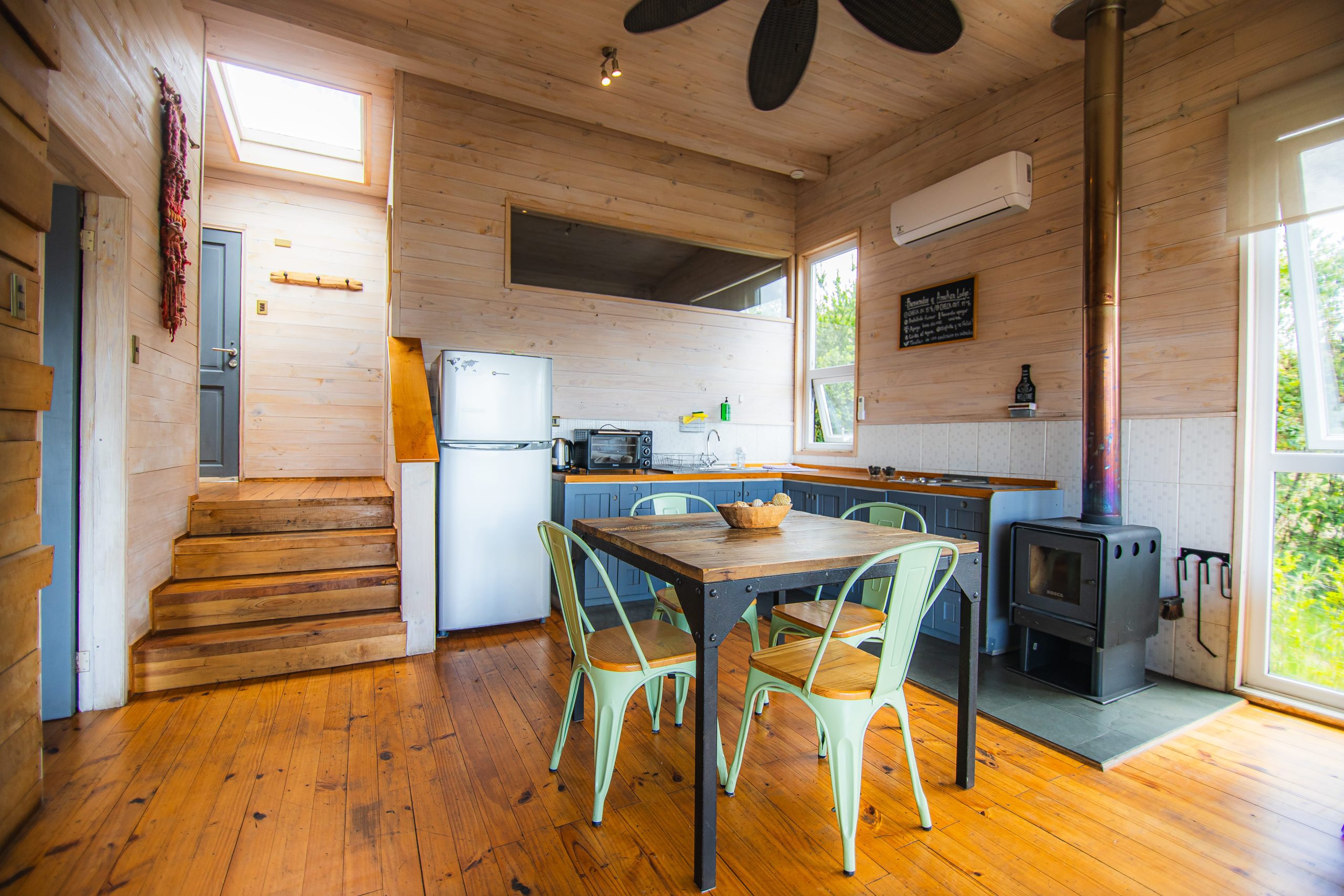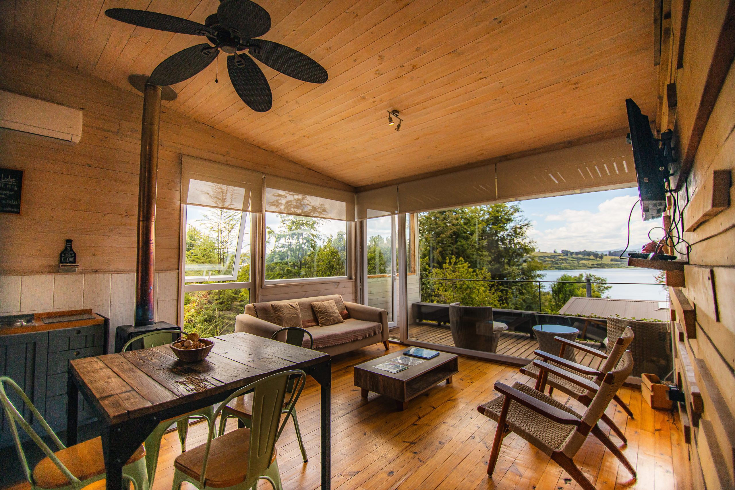 La propiedad se encuentra en una parcela de 5.000 m2 con cuatro casas y una cabaña que suman 420 m² construidos. Todas con orientación norte, sol durante todo el día y una vista maravillosa al lago Panguipulli y al volcán Villarrica. Está ubicada a solo 3 minutos del lago, combinando tranquilidad y cercanía.