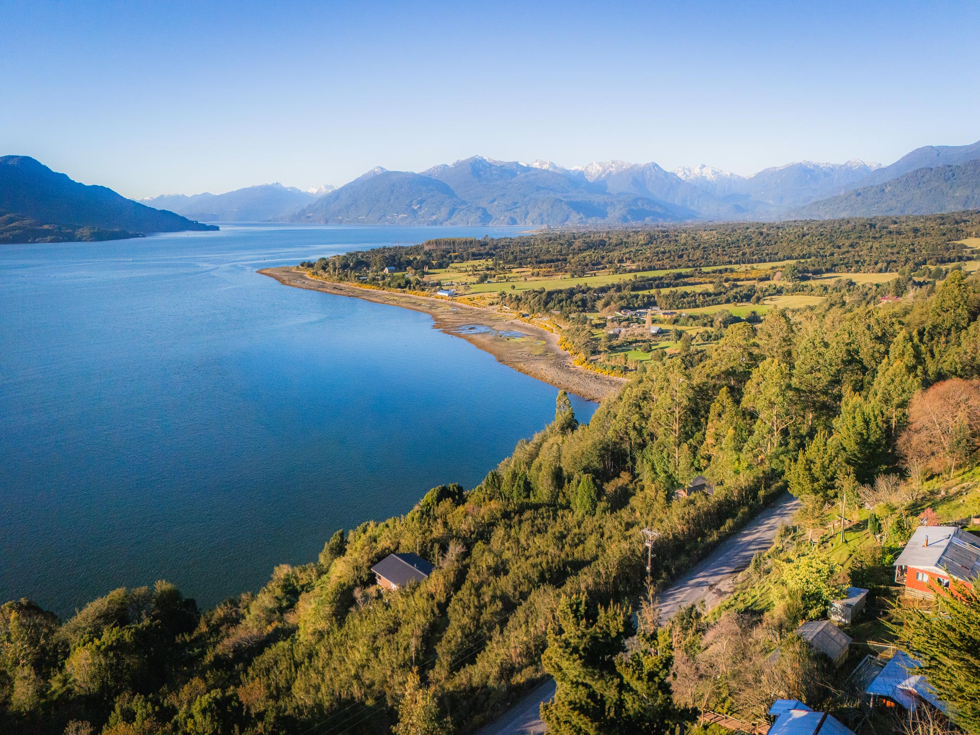 Cuenta con una acogedora cabaña de 72 m², terrazas, quincho y sauna, ubicada en un condominio exclusivo de solo 10 parcelas, entre el río Puelo y Caleta Puelche, en los faldeos del volcán Yates.